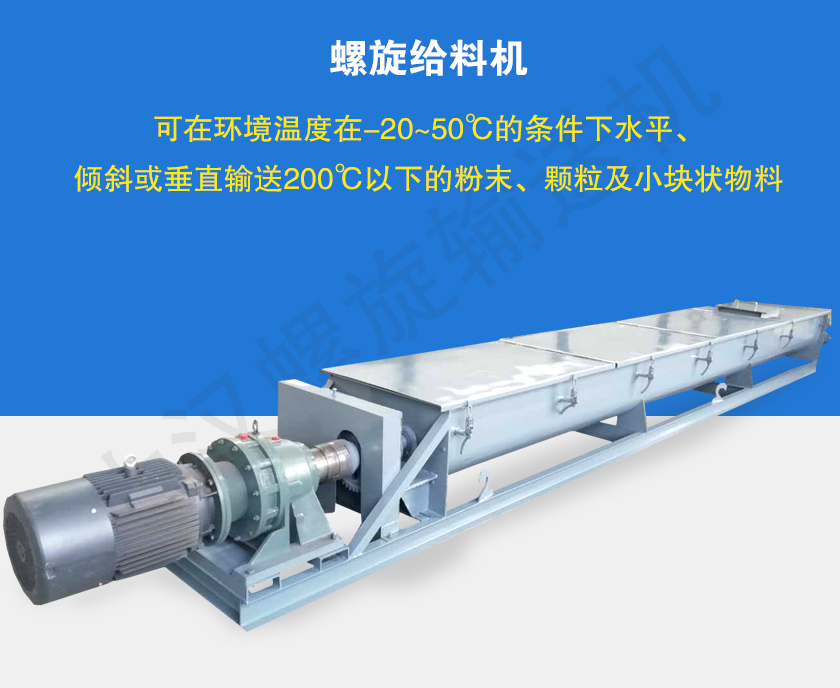 螺旋給料機(jī)又叫螺旋(xuán)喂料機,可在環境溫度在-20~50℃的條件下水平、傾(qīng)斜(xié)或垂直輸送200℃以下的粉末、顆粒及小(xiǎo)塊狀物料。大漢螺旋給料機可根據輸送物料及應用環境選擇碳鋼、不鏽鋼材質。